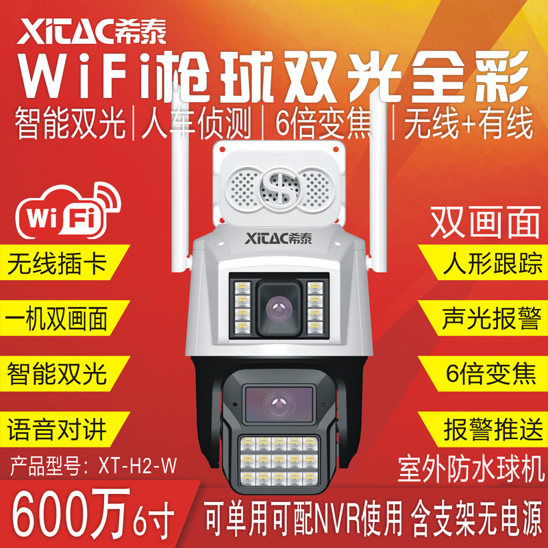 XT-H2-W 600万5寸WiFi枪球双画面AI警戒跟踪无线球机