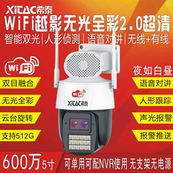XT-Q5SL-W WiFi 600万5寸AI越影无光全彩无线球机