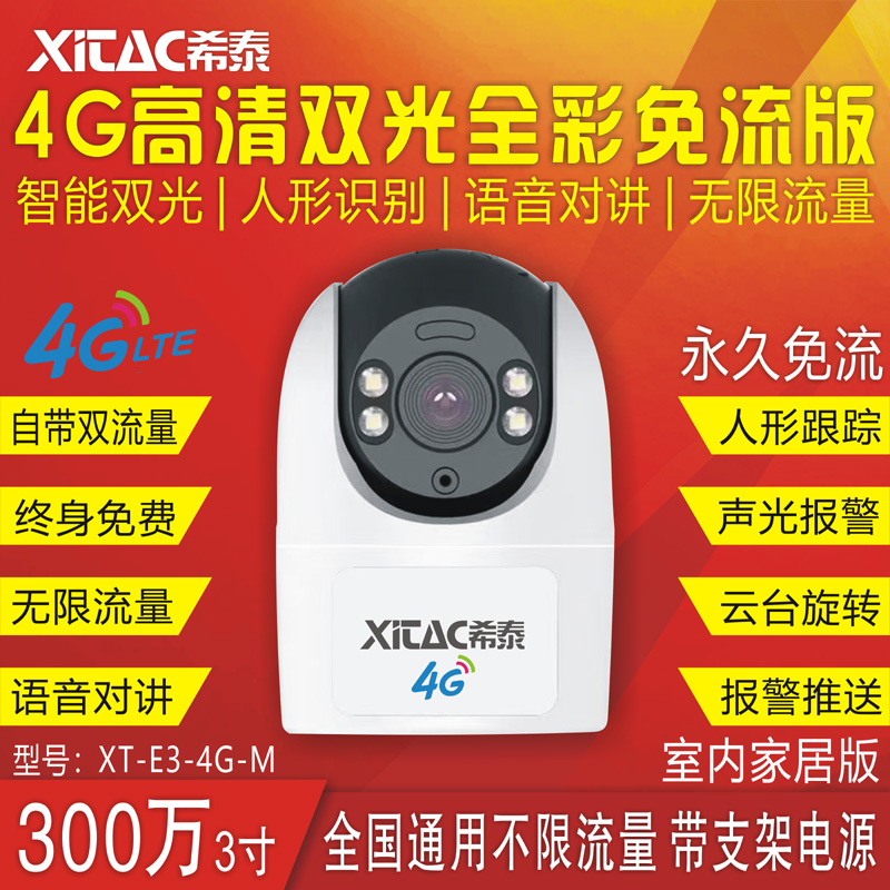 XT-E3-4G-M 4G免流家居版智能双光人形跟踪警戒无线插卡